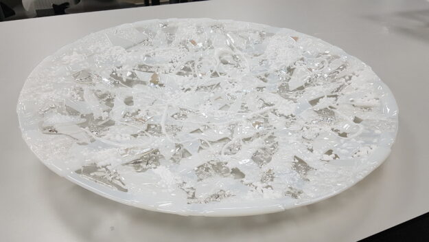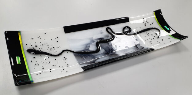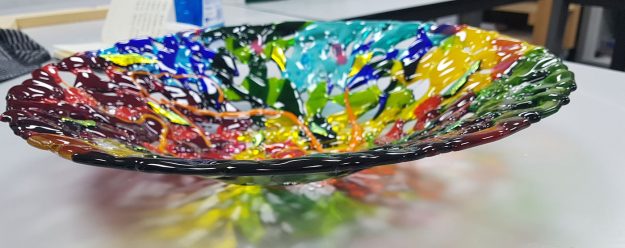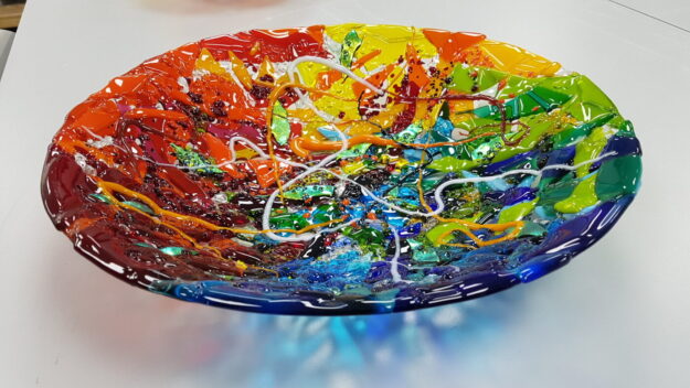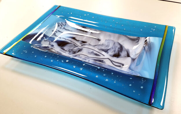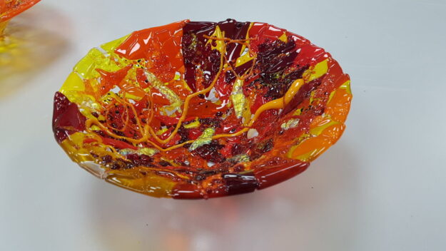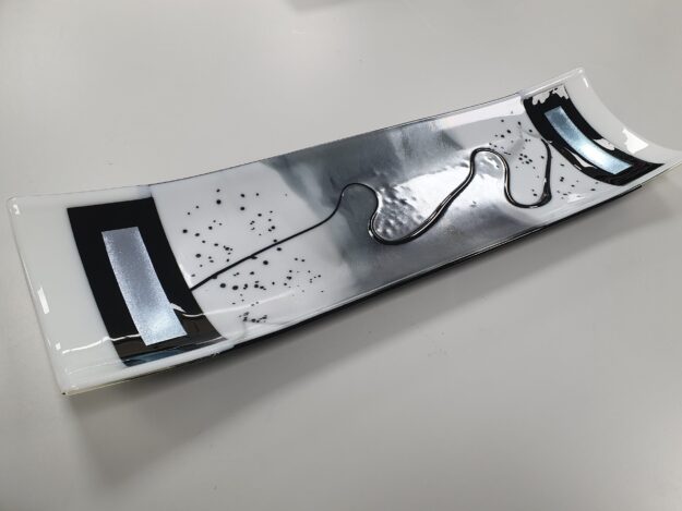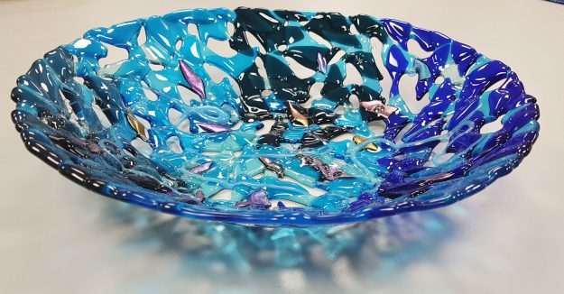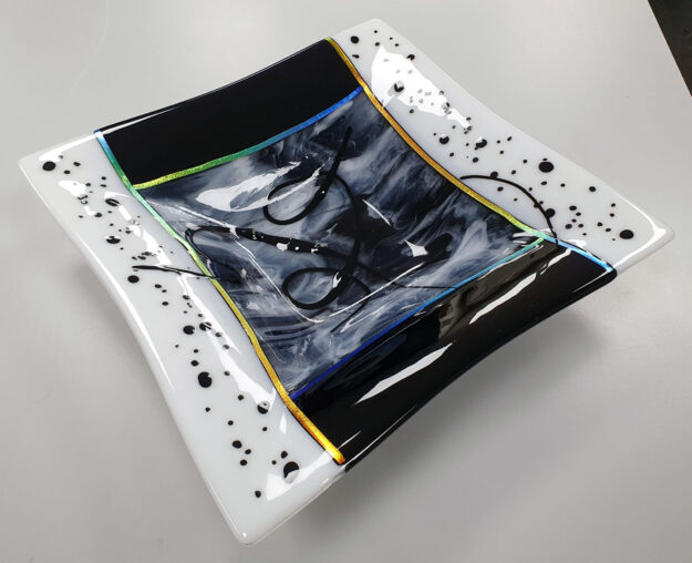Tableau delicately object nr 24.37 Vierkant model open gewerkte schaal. Ziet er prachtig uit! Fijntjes afgewerkt en mooi gebogen. Veel dichroic details erin verwerkt. Beschikbaar: ja Staat in mijn atelier in Obdam Klik op het filmpje hieronder voor beter idee.